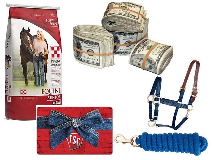 Sir Galahop will need a halter and lead rope (blue, please!) - this breakaway halter is $36.95 and the woven cotton lead rope is$12.95. He is currently eating Purina Equine Senior (three 50 lb bags would be $85.47 from Tractor Supply). Of course, a Tractor Supply gift card works too!