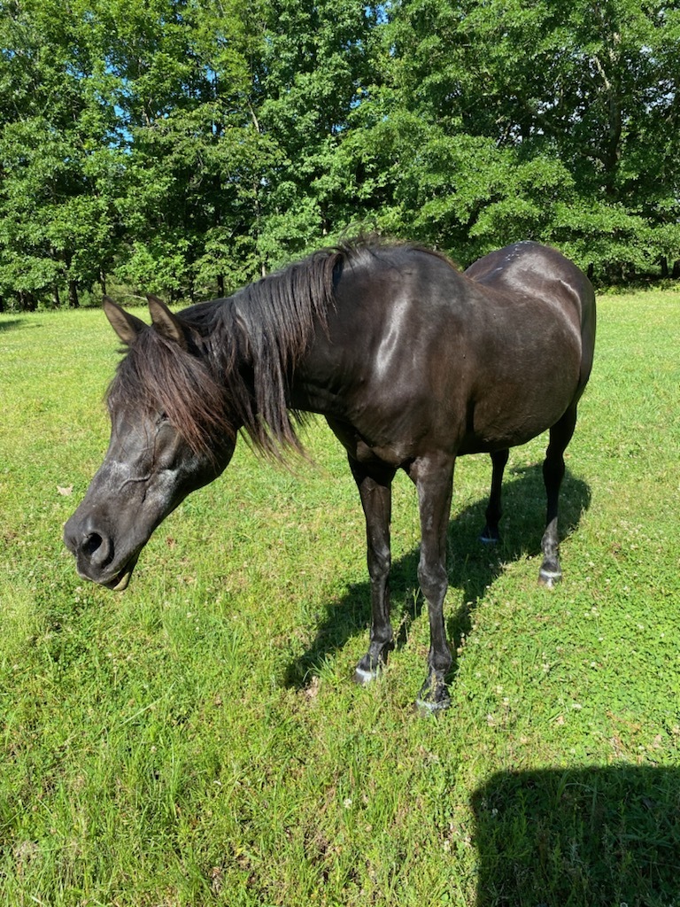 Fancy (Fancy Pants) is a 30 year old black mare who came to Sunkissed in August 2019. Sunkissed assisted with the placement of fifteen Arabs that had not been handled in a very long time - at one time the owner showed and bred Arabs but they had never planned for their own old age.The owner had a stroke at 82 years old and we placed all the horses but Fancy was the oldest of the herd, thin and unwanted. Sunkissed gave her sanctuary. Fancy would love some Triple Crown Senior Feed (a 50 pound bag is $31.49) and some soft treats (a two pound jar of Equine Edible's carrot cake treats is $18.99). She also needs dewormer (Zimerectin Gold Paste Dewormer is $17.99) and a fleece cooler for under her blanket (she loves this lavender one from SmartPak, in a size 74, $72.95).