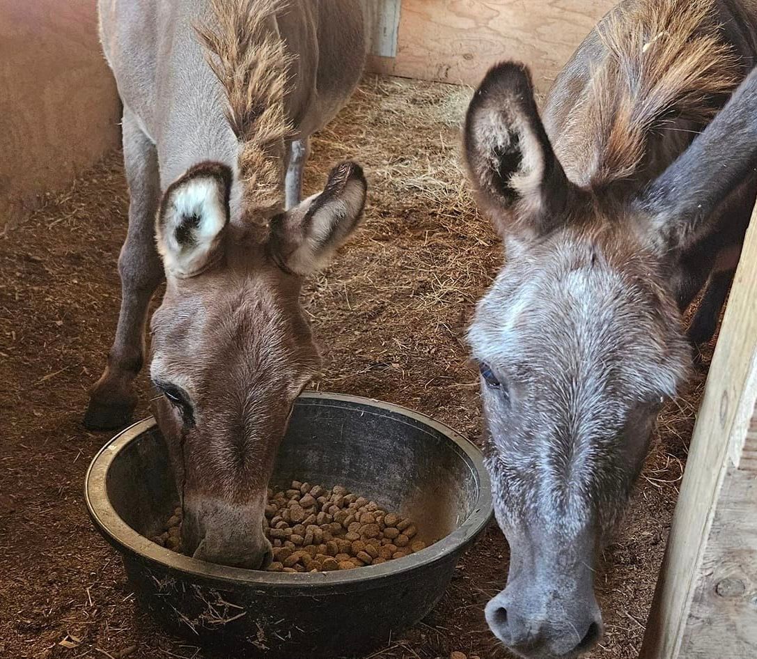 Charlie and Carlos are a pair of 26 year old gelded, miniature donkeys. They were owned by the same woman all of their lives, but she is getting older and needed to scale back, so she asked Bluebonnet to take them in.These guys have had good care - too good, because they're both obese!