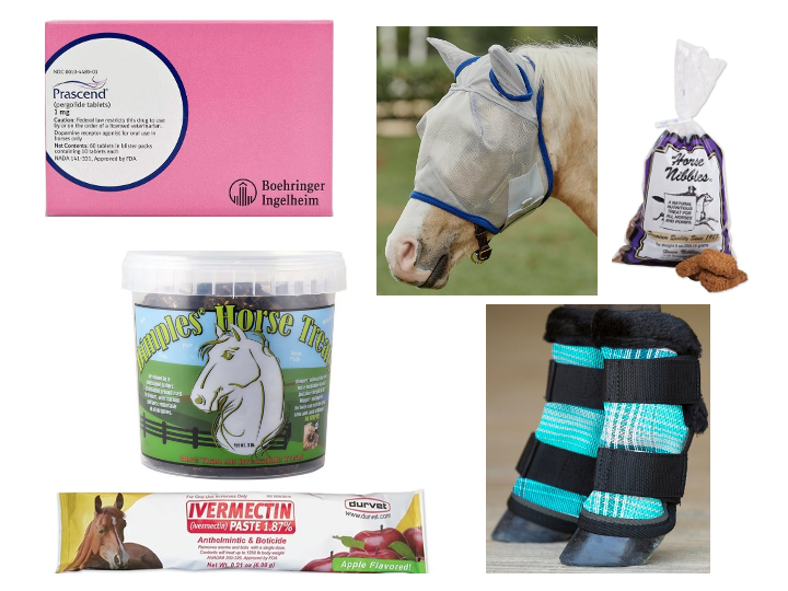 Charlie was just diagnosed with Cushing's Disease, so he would like Prascend tablets. He would also like pill pockets for horses to make those tablets taste better - he isn't a fan! He would also like some small fly boots as he is very sensitive to flies.